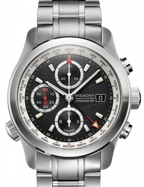 2010年,Bremont受委托为军用C-17 Globemaster船员生产独特的全时区腕表。这款腕表一经推出, 收到了良好的使用反馈。因此,Bremont开发了这款’Globemaster’手表作为民用市场的Bremont World Timer,并制作了他们的第一款全球计时手表。功能包括表盘上的蚀刻球体,所有24个时区,Trip-Tick表壳和Roto-click表圈。