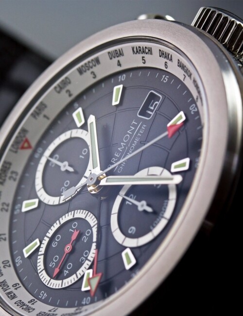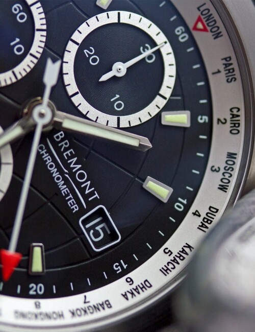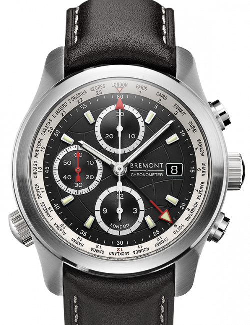 2010年,Bremont受委托为军用C-17 Globemaster船员生产独特的全时区腕表。这款腕表一经推出, 收到了良好的使用反馈。因此,Bremont开发了这款’Globemaster’手表作为民用市场的Bremont World Timer,并制作了他们的第一款全球计时手表。功能包括表盘上的蚀刻球体,所有24个时区,Trip-Tick表壳和Roto-click表圈。