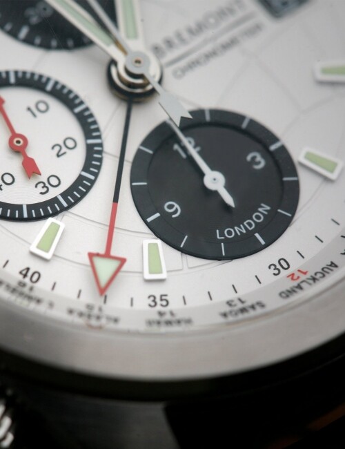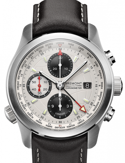 2010年,Bremont受委托为军用C-17 Globemaster船员生产独特的全时区腕表。这款腕表一经推出, 收到了良好的使用反馈。因此,Bremont开发了这款’Globemaster’手表作为民用市场的Bremont World Timer,并制作了他们的第一款全球计时手表。功能包括表盘上的蚀刻球体,所有24个时区,Trip-Tick表壳和Roto-click表圈。