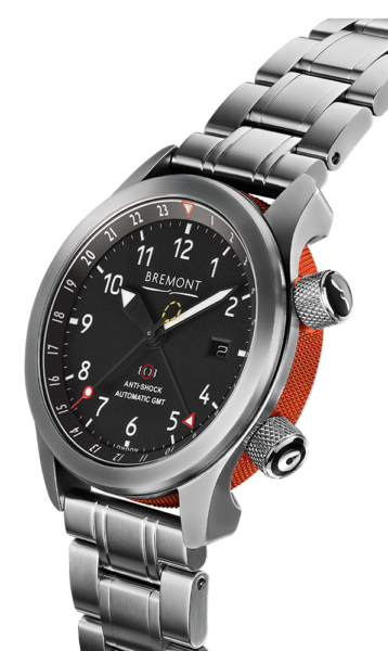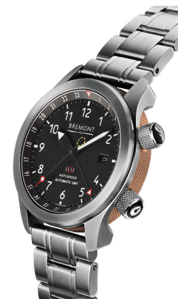 与它的航空根源一样,更新的日期显示被设计用来反映高度计上的视图,这样可以很好地平衡刻度盘。还有一个区别是双向旋转的内边框,最初设计为60分钟,在U-22上改变为飞行员的罗盘象限,这在导航气象制图中很有用。铜桶的颜色是由Bremont过去生产的一些军用手表特别设计的,这些手表是基于驾驶舱顶棚上使用的抗反射涂层。