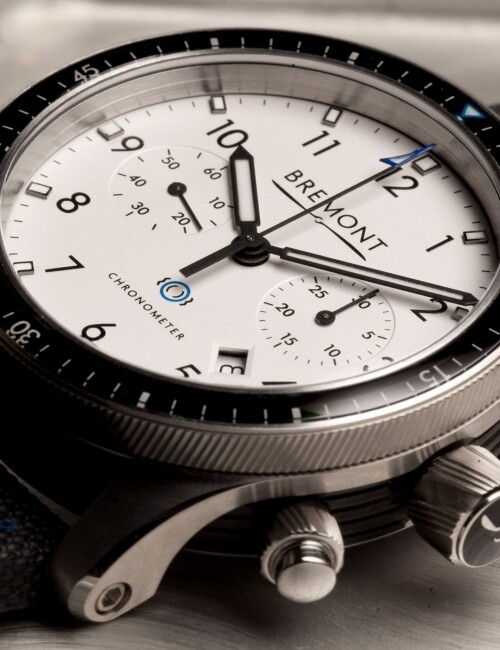 与它的航空根源一样,更新的日期显示被设计用来反映高度计上的视图,这样可以很好地平衡刻度盘。还有一个区别是双向旋转的内边框,最初设计为60分钟,在U-22上改变为飞行员的罗盘象限,这在导航气象制图中很有用。铜桶的颜色是由Bremont过去生产的一些军用手表特别设计的,这些手表是基于驾驶舱顶棚上使用的抗反射涂层。