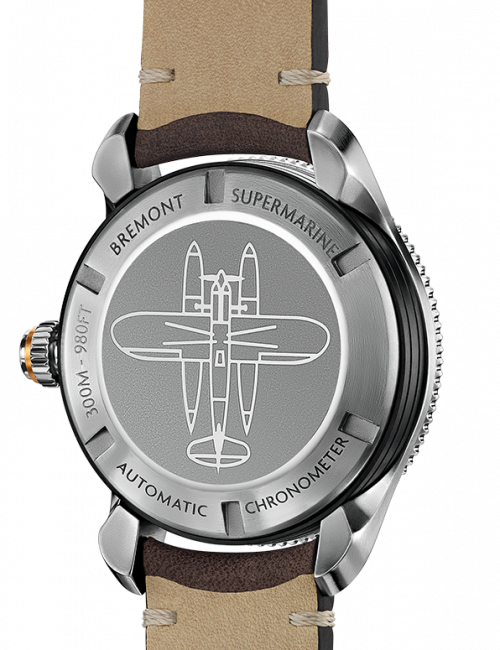 不锈钢Bremont Trip-Tick®外壳结构,防刮DLC处理外壳。