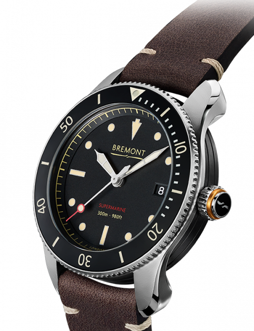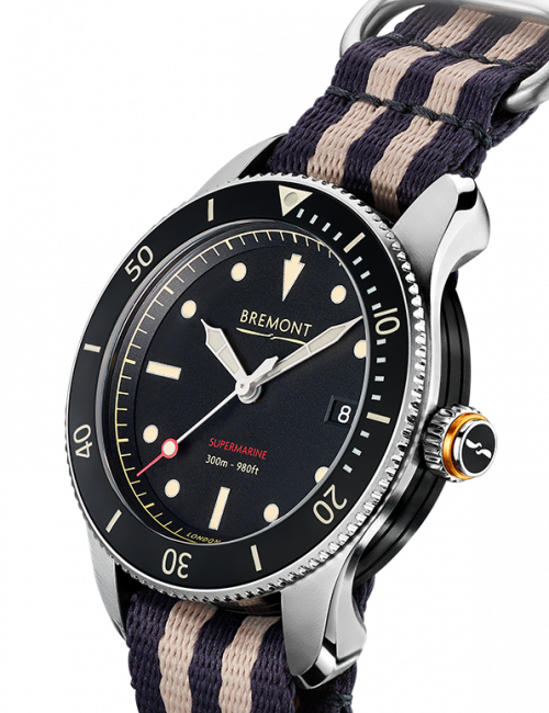 为满足不同的潜水需求,我们设计了全新、整体略小的Bremont Supermarine Type 300系列。 这些手表的命名源自于1930年代同名的飞机公司Supermarine。 它所推出的首款Spitfire 300,至今仍然是英国历来最具代表性的飞机之一。 全新的S300系列拥有40mm的表盘,配以较纤细、只得13毫米厚的蓝宝石晶体表壳和陶制单向旋转外圜。