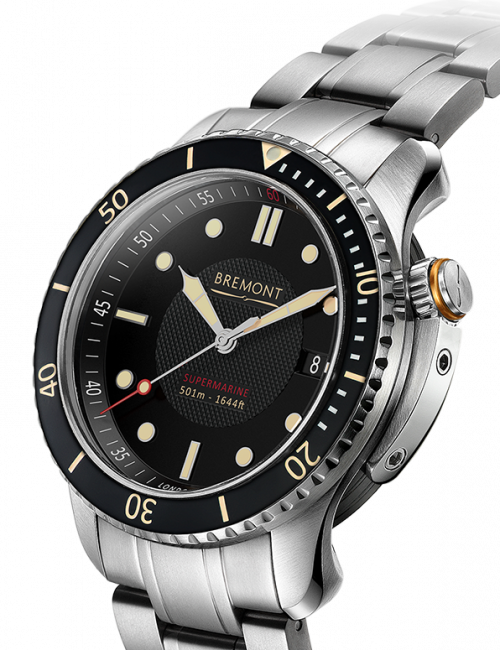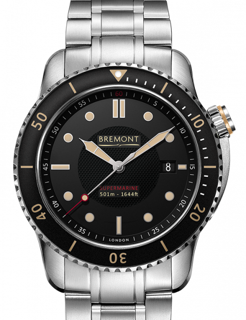 Bremont(宝名表)有史以来设计制作的第一款潜水表为于2009年推出的43毫米Supermarine 500。 当时,品牌的创办人Nick和Giles English决心打造出美观、坚固耐用、强调高机能性,同时能与品牌强大航空传统连系的潜水手表。 不单如此,在器械运作、设计和价位方面,它都必须达到甚至超越市场上已有的专业潜水手表水平。 此系列的名字取自创办人两兄弟对有份设计水上飞机Supermarine S6B Schneider Trophy Seaplane和Supermarine Spitfire的著名英国飞机制造公司的崇高致谢。