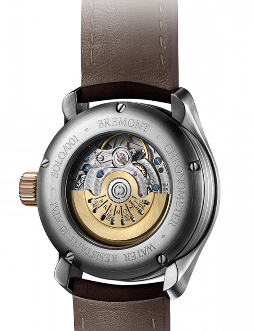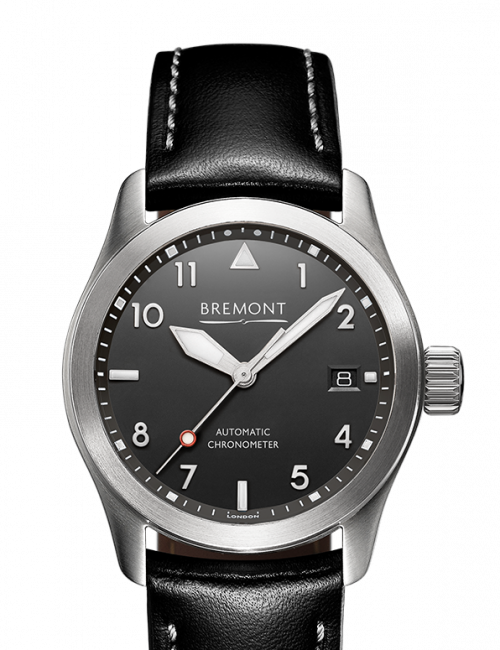 SOLO 37 整体特点 BE-36AE自动计时器,38小时动力储存 37毫米不锈钢Bremont Trip-Tick®表壳结构 防水10 ATM,100米 黑色皮革表带