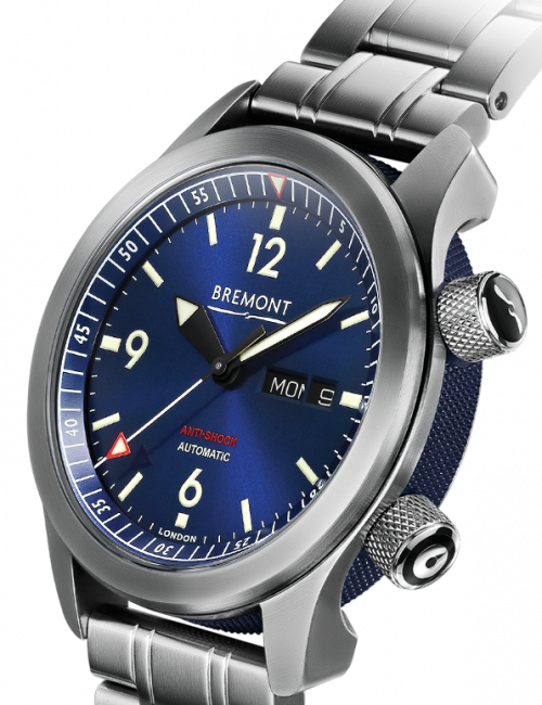 与它的航空根源一样,更新的日期显示被设计用来反映高度计上的视图,这样可以很好地平衡刻度盘。还有一个区别是双向旋转的内边框,最初设计为60分钟,在U-22上改变为飞行员的罗盘象限,这在导航气象制图中很有用。铜桶的颜色是由Bremont过去生产的一些军用手表特别设计的,这些手表是基于驾驶舱顶棚上使用的抗反射涂层。