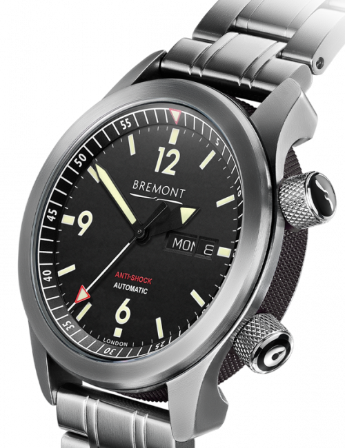 与它的航空根源一样,更新的日期显示被设计用来反映高度计上的视图,这样可以很好地平衡刻度盘。还有一个区别是双向旋转的内边框,最初设计为60分钟,在U-22上改变为飞行员的罗盘象限,这在导航气象制图中很有用。铜桶的颜色是由Bremont过去生产的一些军用手表特别设计的,这些手表是基于驾驶舱顶棚上使用的抗反射涂层。